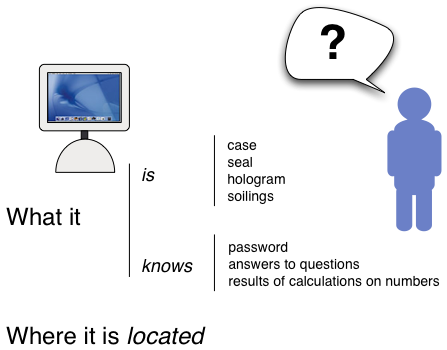 Some of these are frequently used to establish the authenticity of the IT system. Consider, for instance the digital certificates used in SSH connections. The user can in principle verify the trust chain and establish that such a certificate is valid, notwithstanding the problems associated with the opaque CA system as mentioned in section .