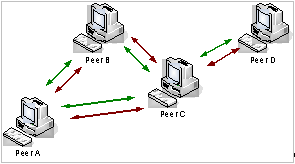 Figure : Pure P2P based system using the Flooded Request Model for information retrieval