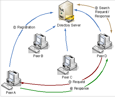 Figure : Hybrid P2P based system which uses the Centralised Directory Model for information retrieval