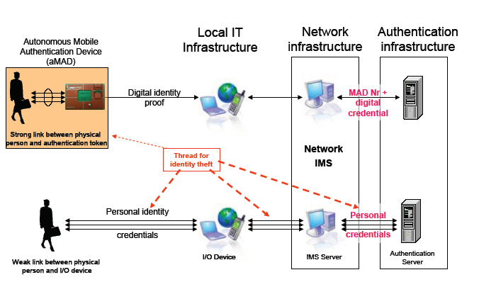 Identity management systems (IMS) manage digital identities, authorisations and rights of the identities and the delivery of services and credentials to their legitimate users. For a proper operation one needs mechanisms that guarantee that the digital identity represents the legitimate physical user (see requirement IV.b of section 2.1: Integrity of idenetity credentials). Today’s main threat to the security of IMS comes from impostors who usurp a digital identity from a legitimate user (Phishing, social engineering, man-in-the-middle and other forms of identity theft). It is uncontested that Passwords or PIN-codes alone provide an insufficient tie between a physical person and its digital identity (Girard and Hirst, 2004). Stronger authentication schemes are mandatory for all IMS that manage valuable rights, data and services.