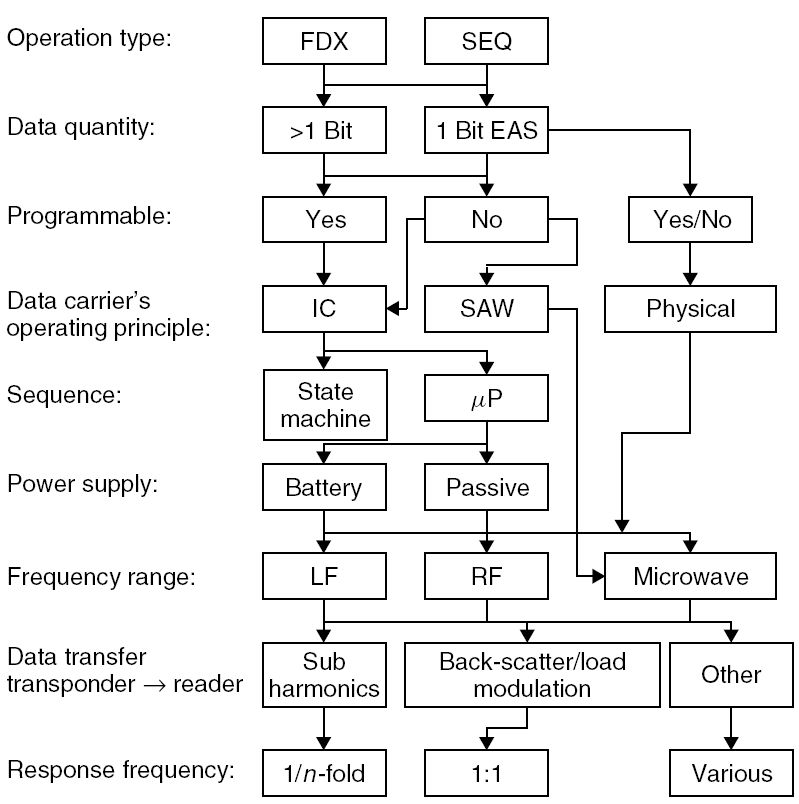 Figure : A flow diagram representing the major basic combinations of RFID systems