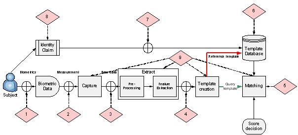 Figure : Fault sensitive points of a biometric system: