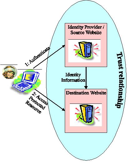 1. Web single sign-on (SSO): In web SSO, the user logs on to one web site and can access other web sites later on with the identity provided previously, without re-authenticating. This assumes an underlying trust relationship between the web sites’ providers.