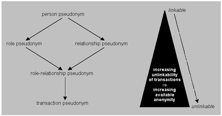 These pseudonyms form a lattice according to the amount of information they reveal about the linkability to their holders. This lattice is shown in Figure 23 (cf. Pfitzmann, Hansen 2007).
