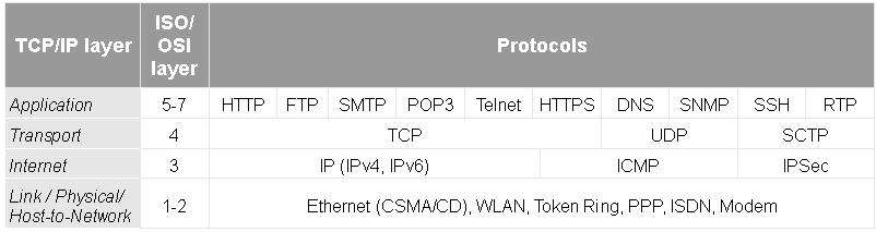 Today’s Internet architecture is based on the Internet reference model (also called TCP/IP model) which was developed before the ISO/OSI reference model and consists of only four layers. These layers are shown in Table 2.