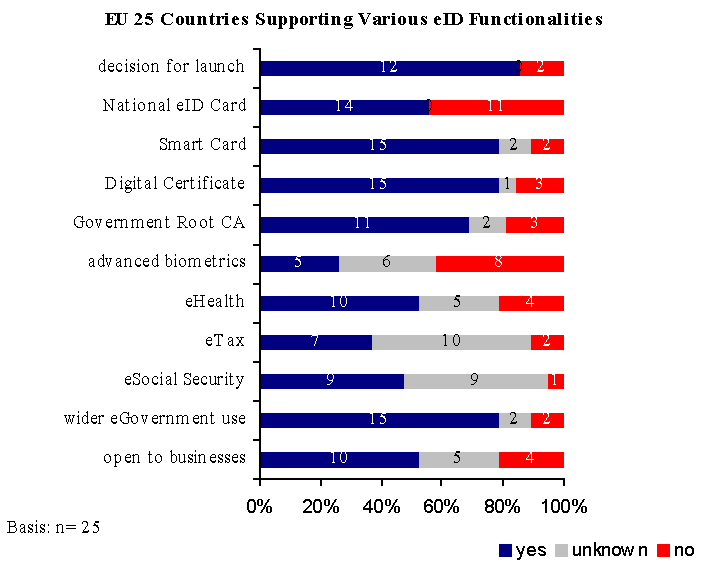 Figure : Number of EU 25 Countries Supporting various eID Functionalities