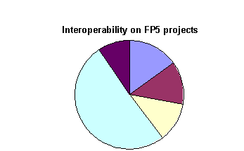 Second, grouping the Cordis database projects around the different strategic objectives in FP5 and FP6, we observe a shift in the area that includes the majority of interoperability-related projects. In FP5, more than 50% (75 projects from a total of 147) of financed projects are classified in the area of “Essential technologies and infrastructure”, while in FP6 interoperability-related projects are less concentrated on a single strategic objective and 23% of the projects (9 out of 40) are in the “Networked businesses and governments” area.