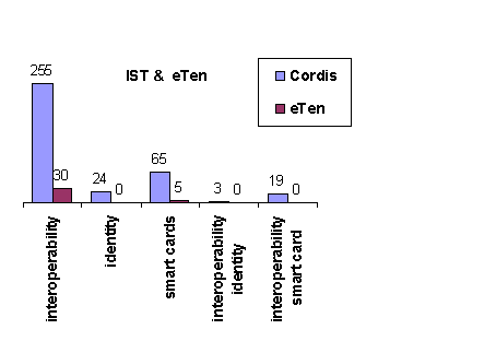 We now present some results obtained performing queries on the Cordis and the eTen databases using keywords related to interoperability and identity concepts. shows the number of projects for both topics in these databases: