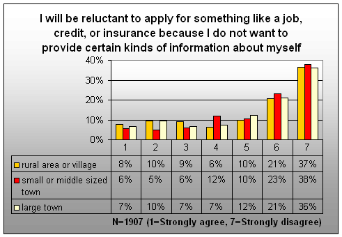 Female respondents reported reservation more frequently about giving their personal information in certain situations, such as when applying for a job or for banking and insurance purposes.
