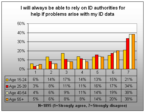 We found an interesting effect of age on relying on ID authorities for help if problems arise. In contrast, younger respondents agreed with the statement more often, when compared to the older respondents.