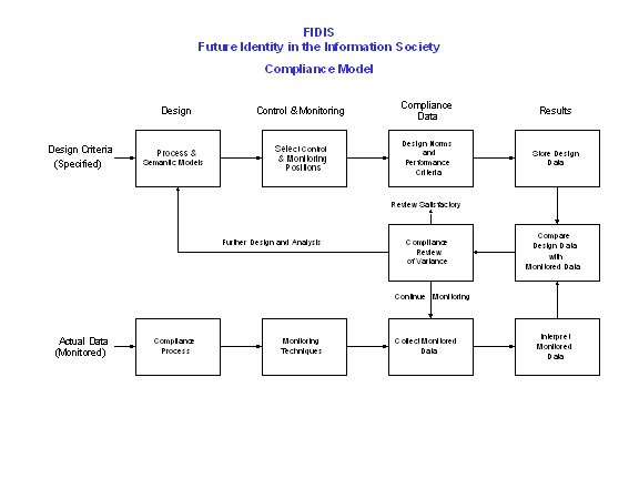 A generic compliance model has been developed in order to assess the degree to which institutions are fulfilling their obligations and their effectiveness in applying identity management. The model is shown in Figure 6 and the following statements briefly describe the areas of interest within the model.