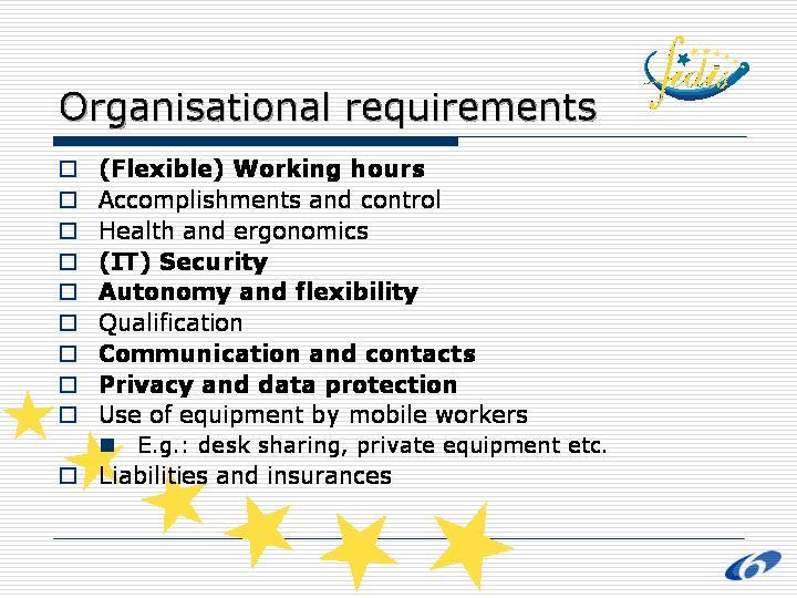 When mobile work in combination with mobile communication and flexible working hours is introduced, the kind of changes and the invasiveness of changes in the employee’s identity can show a big variety. In general two effects can be observed: