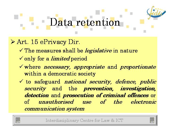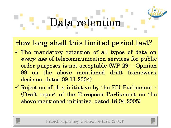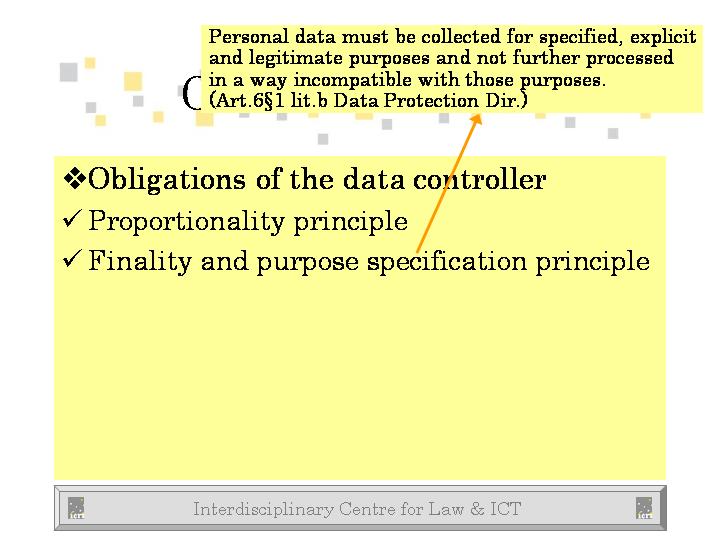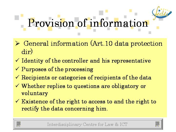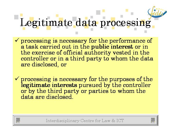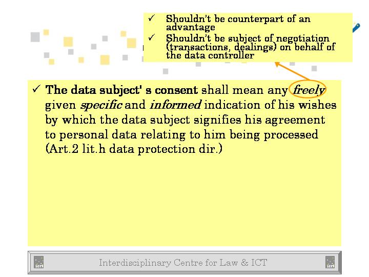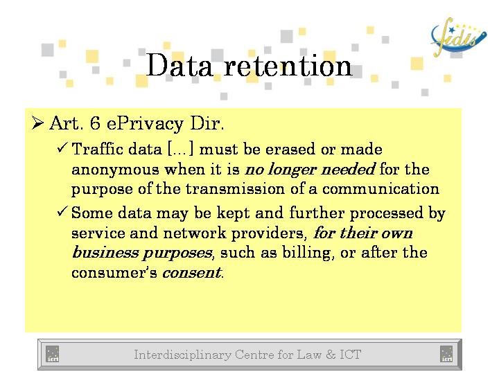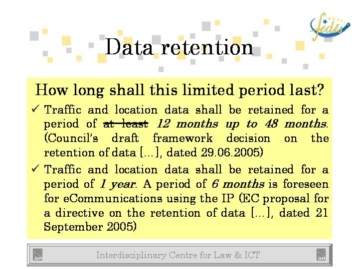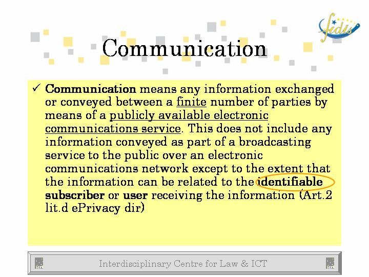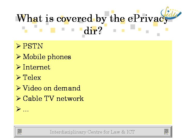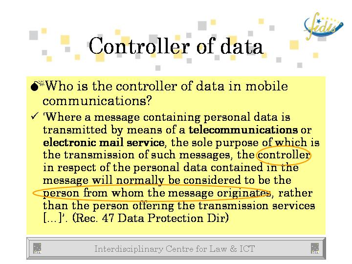 The current legal framework is mainly based on two European directives, the data protection directive (1995/46/EC) and the ePrivacy directive (2002/58/EC); ICRI shall apply the existing framework to mobile communications. For D11.2 we will apply the current legislation on LBS in use cases and we will also try to spot the issues that the current legislation does not cover. Many questions arise with regard to ‘consent’ (who shall give it and who shall be the recipient, how and when shall it be given and how can it be withdrawn), to data retention, to the protection of minors etc. Our main goal is, apart from providing an overview of the existing legal framework related to the mobile communications, to contribute practically to the resolving of the scenarios that will be chosen.