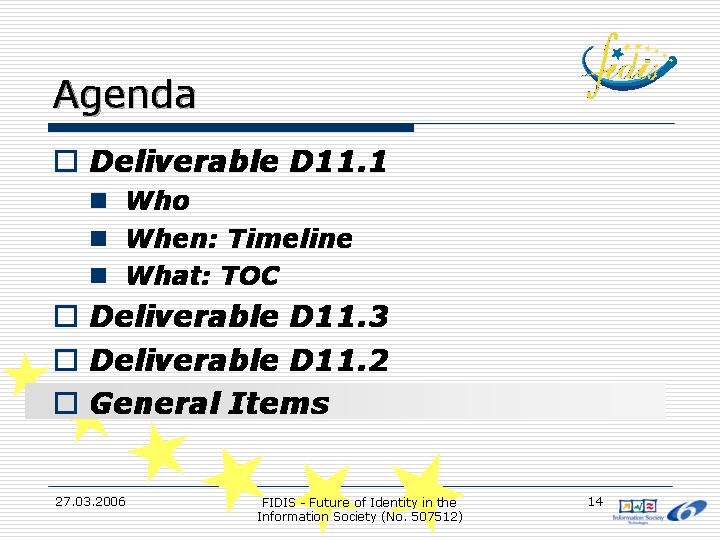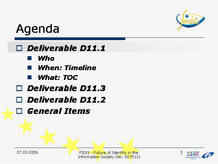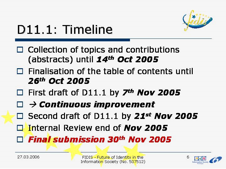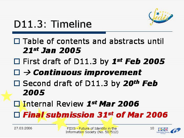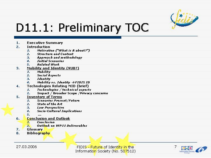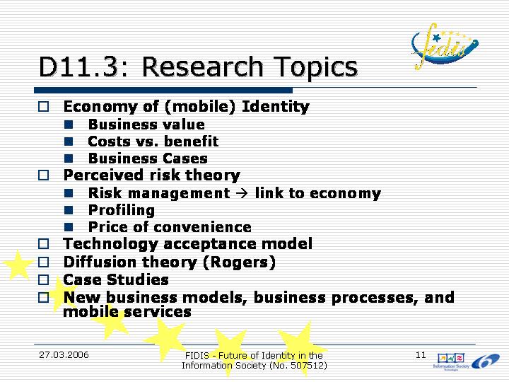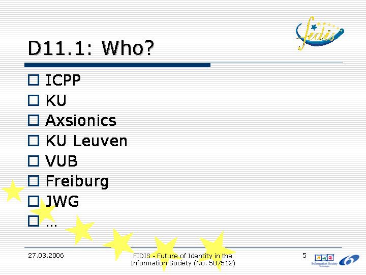 This set of slides was introduced for the coordination of the work in WP11.