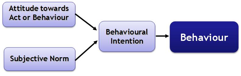 Starting from the behavioural intentions, these include the functions of an individual’s attitude towards the behaviour and the subjective norm surrounding the performance of the behaviour. Accordingly, the actual use of an innovation is determined by the individual’s behavioural intention to use it. The Attitude towards an act or a behaviour are the individual’s positive or negative feelings about performing a behaviour, determined through an assessment of one’s beliefs. Subjective norm is defined as an individual’s perception of whether people important to the individual think the behaviours should be performed. “To put the definition into simple terms: a persons volitional (voluntary) behaviour is predicted by his/her attitude toward that behaviour and how he/she thinks other people would view them if they performed the behaviour. A persons attitude, combined with subjective norms, forms his/her behavioral intention”.