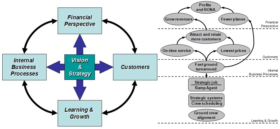 The term “balanced” reflects the intent to maintain a balance between the perspectives and their contained performance indicators. Namely the balance is kept between short- and long-term objectives, lagging and leading indicators, and financial and non-financial measures. Furthermore, the specific performance indicators contained in the four perspectives show interdependencies which can be further analysed by causal-chains and causal networks, also referred to as strategic maps.