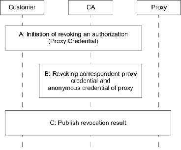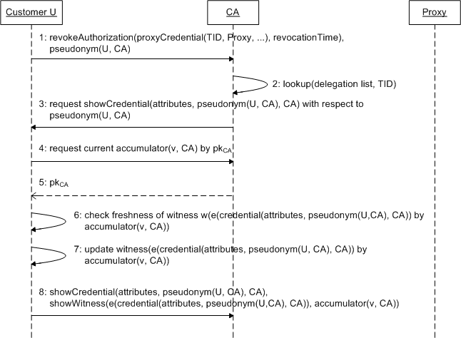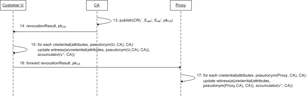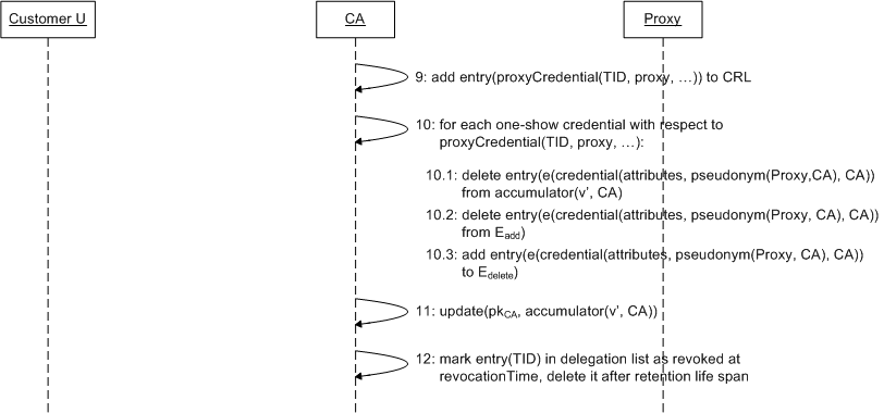 Figure 6. The certification authority performs the revocation of the proxy credential and the pertaining anonymous credential.