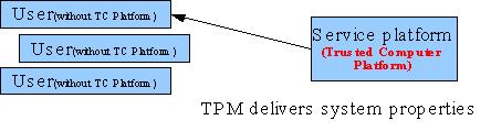 While TCP employment on the user side mainly entails drawbacks for the user, the employment of TCG platforms on the side of a service provider (see ) offers several benefits for both sides. With the employment of TCG platforms on the side of the service provider, users can obtain additional information about its state. Since this technology correctly communicates information about a system and the service user is recipient of additional data there are no drawbacks for him as with the employment on the user/client side and the service user is in a position to make an assessment of the system on the basis of this data. The service provider can use TC platforms to increase the trustworthiness and acceptance of his services. Since a provider, in contrast to a user, appears publicly anyway, it can be assumed that he has no interest in protection against an identification of his platform. Due to this line of interest, the problems and concerns about TCG platforms do not pose any more barriers in this connection.