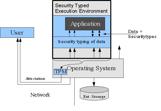 The prerequisite of this approach is a proper functioning of the type inference and the initial allocation of security types. Through the use of TCPs, it can be verified to the user whether certified software is used that implements an execution environment with type inference and an initial allocation of security types. The application does not have to be an integral part of the software components to be certified, whereby the certification outlay is restricted to one execution environment with information flow analysis and to the allocation of security types.