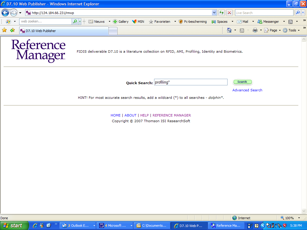 Figure : The Reference Manager literature selection on RFID, AmI, Profiling, Identity and Biometrics